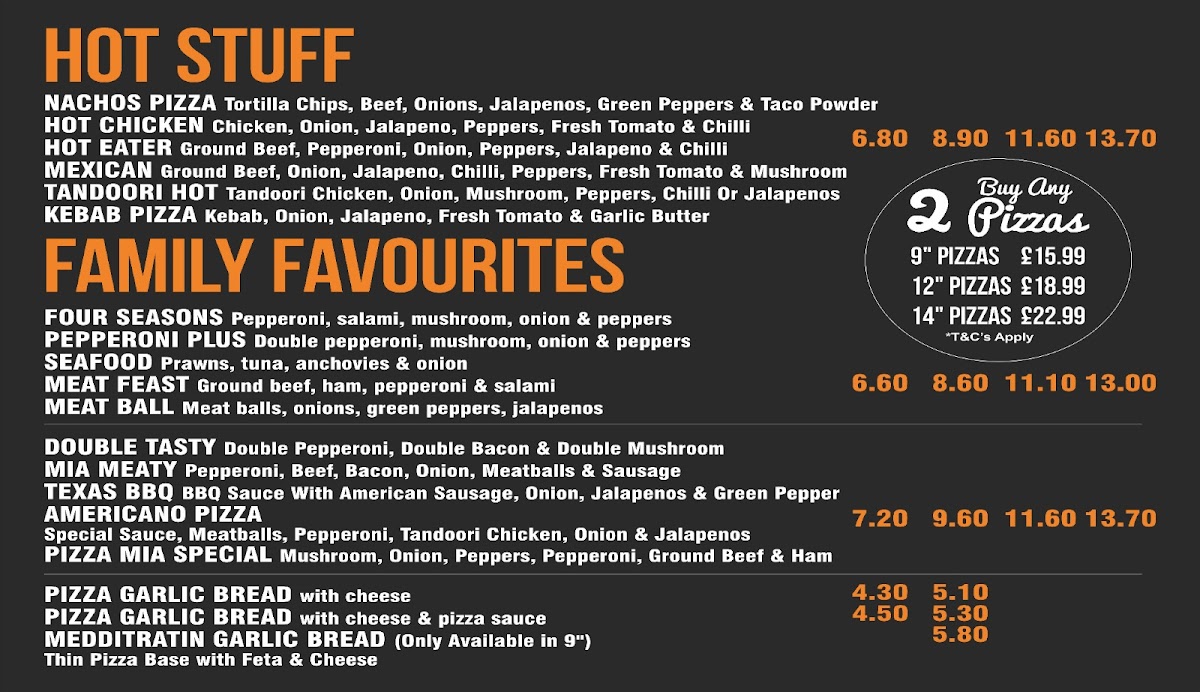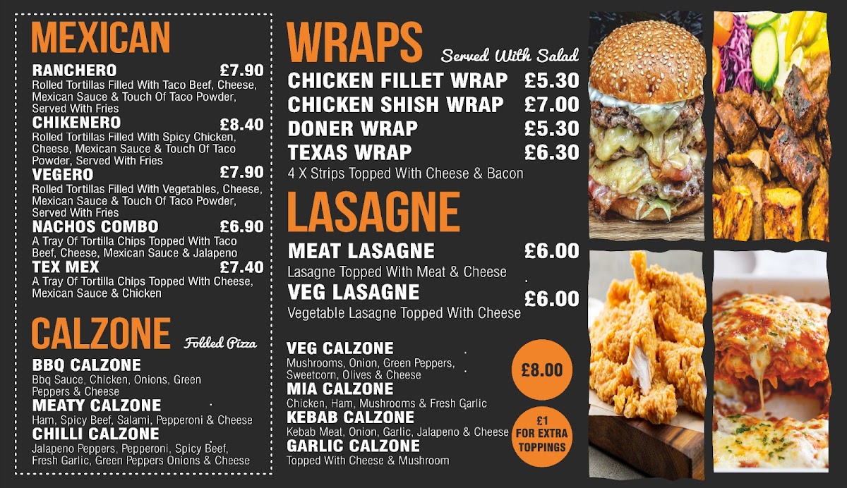 Introducing the menu at Pizza Mia - Shepshed, where delightful culinary creations await you. Located in the heart of Shepshed, this charming eatery offers an impressive array of dishes that cater to diverse tastes. Their selection includes mouthwatering pizzas, tantalizing calzones, and delicious Mexican inspired options. Each dish is crafted with freshness and quality in mind, ensuring a satisfying experience for every customer.